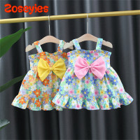 الصيف طفلة فستان الفراولة الزهور كبير القوس حزام اليومية الركبة طول فستان