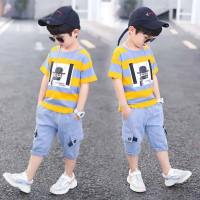 ملابس صيفية للأولاد ، تي شيرت قطني + بنطلون جينز للأطفال بعمر 3 و 4 و 5 و 6 و 7 و 8 و 10 و 12 عامًا