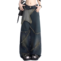 جينز بأرجل واسعة للنساء ، خصر مرتفع ، فضفاض ونحيف ، شعور بالنجمة ، حافة خام ، بنطال ممسحة ، أسلوب الأخت الملكية البدينة ، الرجعية ،