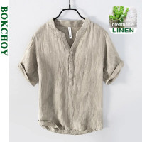 تيشيرت رجالي كلاسيكي من الكتان الخالص بأكمام قصيرة ، رقيق أحادي اللون ، ملابس رجالية ضيقة ، مقاس كبير ، صيف ، جديد ، BL888