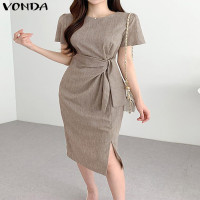 فستان نسائي أنيق قصير الأكمام موضة 2023 فوندا فستان ميدي ملون فساتين مكتب كلاسيكية كبيرة الحجم