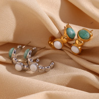 امازونيتي-اقراط بيضاوي اللون من اليشم الأبيض للنساء ، 18K مجوهرات مطلية بالذهب ، 316L ستانلس ستيل ، فضي