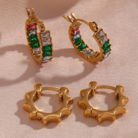 ه. ب. أقراط طوق صغيرة من الزركونيا المكعبة الحسناء للنساء ، مطلية بالذهب ، فولاذ مقاوم للصدأ ، برشام ، ظريف ، فاخر ، هوجي
