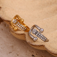 غير متماثلة حجر الراين حلقة مفتوحة ، حزام مشبك ، مقاومة للماء ، 18K مطلية بالذهب ، 316L الفولاذ المقاوم للصدأ ، اكسسوارات المجوهرات