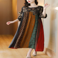 فستان صيفي حريري مطبوع للنساء ، فستان مزيف برقبة دائرية ، فستان نسائي فاخر كلاسيكي ، فساتين نسائية طويلة ورخيصة ، كورية ، فاخرة ، تي