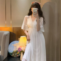 قميص نوم أبيض من الدانتيل للنساء ، فستان ليلي مثير للفتيات ، مقاس كبير ، ملابس نوم كبيرة الحجم ، ثوب نوم