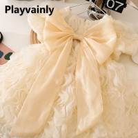 فستان بعقدة فراشية مطرز للفتيات ، فساتين أميرة للأطفال الصغار ، ملابس حفلات بأكمام قصيرة ، دانتيل ، صيف ، جديد ، موضة