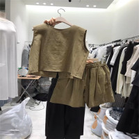 بلوزة صيفية للفتيات كبيرة الحجم لعام 2024 بدلة نسائية بأكمام قصيرة قميص علوي عالي الخصر بنطال واسع الساق مكون من قطعتين شورت
