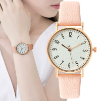 ساعة كوارتز رقمية بسيطة بعلامة تجارية وساعة نسائية كاجول جديدة موضة 2023 وحزام من الجلد الوردي فستان ساعة نسائية