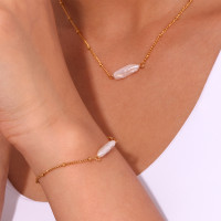 ه. ب. قلادة لؤلؤ طويلة من حسناء مع سلسلة من الخرز للنساء ، قلادة مطلية بالذهب عيار 18 قيراط ، سوار وأساور من الفولاذ المقاوم للصدأ ، مجوهرات باروكية