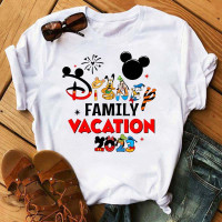 تي شيرت للسيدات مطبوع 2023 مطبوع عليه شخصيات ديزني العائلية تي شيرت Harajuku 90s مضحك ميكي ميني تي شيرت للسيدات ملابس نسائية