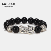سوار فنغ شوي للثروة بالحجارة الطبيعية سوار دائرة واحدة Pixiu 999 سوار مُزين بالخرز مصنوع يدويًا من الفضة الإسترليني