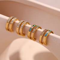 ه. ب. أقراط زركون نسائية بطبقة مزدوجة على شكل حرف C ، مجوهرات مطلية بالذهب عيار 18 ، فولاذ مقاوم للصدأ 316 لتر ، أقراط نسائية