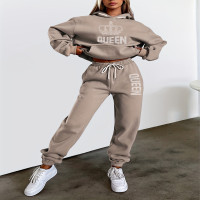 طقم كنزة بغطاء رأس مطبوع عليها تاج كبير للنساء ، ملابس هيب هوب للشارع ، ملابس نسائية غير رسمية ، كنزة رياضية قطيفة ، Y2K ، 2