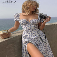 فستان طويل بأكمام نفخة للسيدات ، فستان أنيق للسيدات ، أبيض ، ملابس بدون ظهر ، موضة الصيف ، وصل حديثًا ، 2023
