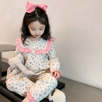 مجموعة بيجامة زهرية لطيفة للأطفال ، كم طويل ، بدلة من قطعتين ، ملابس منزلية للأطفال ، كورية ، جديدة ، خريف