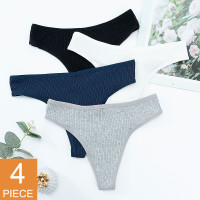 ملابس داخلية نسائية قطنية سراويل داخلية مثيرة منخفضة الخصر g-سلسلة ملابس داخلية نسائية بلون سادة ملابس داخلية للبنات ملابس تحتية تسمح بالتهوية 4 قطعة/المجموعة