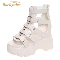النساء سميكة القاع المصارع أحذية امرأة الصيف أحذية رياضية مكتنزة صنادل أرضية عالية الجوف خارج 8 سنتيمتر إسفين الكعوب الشاطئ Sandalias