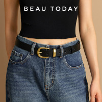 بيوداي-حزام إبزيم بيضاوي من جلد البقر للنساء ، حزام خصر للسيدات ، جينز ، إكسسوارات فستان ، أحادي اللون ، موضة حديثة ،