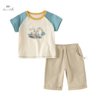 تي شيرت وبنطال قطني للأطفال ، ملابس ماركة ، كاجوال ، قلادة مستديرة ، أكمام قصيرة ، الصيف ، 2 ، db2240872