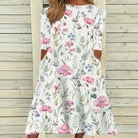 فستان نسائي مطبوع بالزهور ، أنيق ، مريح ، كاجوال ، رقبة مستديرة ، أكمام طويلة ، فضفاض ، حفلة ، ربيع ، صيف