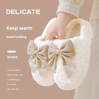 شبشب قطني بفيونكة للنساء ، أسفل سميك ، أحذية دافئة بعد الولادة ، داخلي ، استخدام منزلي ، خريف ، شتاء ، أسلوب
