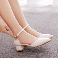كعب عالي مكتنز بالكريستال للنساء ، مضخات بمقدمة مدببة ، صنادل ماري جينس الرجعية ، أحذية حفلات بيضاء