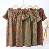 فستان بيجامة بأكمام قصيرة من القطن الخالص للنساء ، جاكار مصبوغ بخيوط ، ملابس نوم قطعة واحدة ، فستان نوم فضفاض ، ثوب نوم