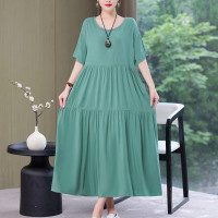 فساتين الصيف غير الرسمية الموضة الجديدة للنساء 2023 ملابس فضفاضة حجم كبير أنيقة الصلبة س الرقبة قصيرة الأكمام ملابس امرأة