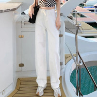 جينز نسائي عالي الخصر بساق واسعة ، ملابس الشارع القوطي النسائية ، بنطلون فضفاض ، موضة هاراجوكو ، بنطلون جينز فضفاض ، أبيض ، مصمم