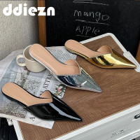 شبشب ذهبي مسطح للنساء ، أحذية بغال نسائية ، شبشب نسائي ، أحذية شاطئية خارجية ، صيف ،!!