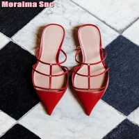 شبشب مجوف نسائي بإصبع مدبب ، حذاء مدرج مثير ، كعب منخفض غريب ، كاجوال خارجي ، أحمر ، برشام ، موضة ، صيف ، جديد ،