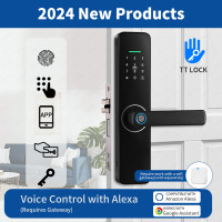 TTLOCK-قفل باب إلكتروني رقمي ، قفل ذكي أسود ، العمل مع تطبيق Alexa ، فتح عن بعد ، قفل بدون مفتاح ، قفل باب بصمة الإصبع ، Z13