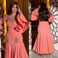 Jiayigong جودة عالية مساء جيرسي الديكور ثنيات الكشكشة ارتياد ألف خط الخامس الرقبة مفصل مناسبة ثوب فساتين متوسطة الطول