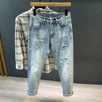 بنطلون جينز رجالي ماركة ستريتوير مزين بالرش بتصميم شخصية ضيقة ومرنة للموضة بنطلون جينز هيب هوب للرجال