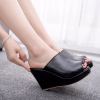 كريستال الملكة أسود أبيض اللمحة تو منصة أسافين عالية الكعب النعال صنادل شاطئ أحذية للنساء