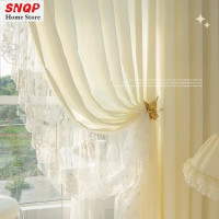 کمرے کے سونے کے کمرے کے کھانے کے لیے اپنی مرضی کے سائز کے فرانسیسی لیس پھول سفید ٹولے کے پردے کھڑکی کی سجاوٹ ویڈنگ لگژری بلیک آؤٹ