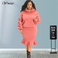 قطعتين مجموعة حجم كبير النساء الملابس Sweatsuit طويلة الأكمام هوديي عالية الخصر ماكسي تنورة مجموعات الشتاء الجملة دروبشيبينغ