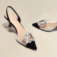 مأدبة الكعب العالي مثير للنساء ، كريستال مريح ، شفاف ، بلون واحد ، إصبع مدبب ، موضة الربيع والخريف ، جديد