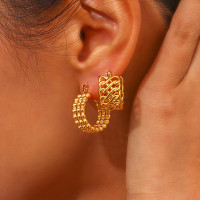 ه. ب. حسناء-أقراط طارة من الفولاذ المقاوم للصدأ للنساء ، حبات مجدولة ملتوية ، لون ذهبي هندسي ، طبقات متعددة ، حجم صغير