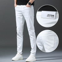 سراويل جينز كاجوال مستقيمة بقصة ضيقة للرجال ، ملابس من علامة تجارية للرجال ، سراويل بيضاء ، أحادية اللون ، كلاسيكية ، جديدة ، خريف ،