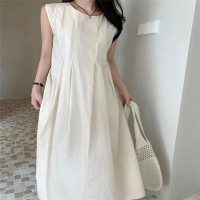 فستان طويل نسائي بدون أكمام أحادي اللون ، رقبة حرف V ، سحاب ، نحيل ، قطن ، فساتين كتان ، أنيق ، تنقل ، مكتب ، سيدة ، صيف ، موضة ،