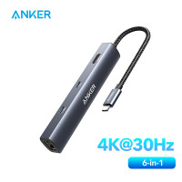 موزع USB C من Anker ، محور إيثرنت USB C PD 6 في 1 مع توصيل طاقة 65 واط ، HDMI 4K ، 1Gbps إيثرنت ، 2 منافذ بيانات USB 3.0