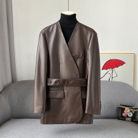 المرأة متوسطة طول جلد الغنم الخامس الرقبة سليم المناسب الدانتيل يصل سترة ، الملابس الرسمية ، والجلود ، الربيع ، الخريف ، جديد