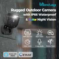 VIMTAG كاميرا صغيرة خارجية واي فاي 4MP مقاوم للماء لون للرؤية الليلية 2-Way الصوت AI كشف كاميرا الأمن مراقبة IP مع اليكسا