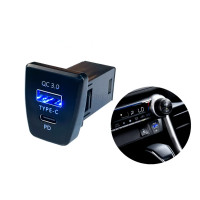 شاحن سيارة مزدوج موضع التحكم المركزي PD Type-c شحن سريع QC3.0 واجهة المقبس لتويوتا RAV4 ويلدلاندر 2020-2023