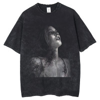 تي شيرت للرجال بتصميم شرير مطبوع على شكل لعبة للمقيمين ، تيشيرت ، غسيل صيفي كلاسيكي ، قطن هراكاجي ، قمة برقبة مستديرة ،