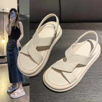 صندل نسائي بنعل سميك مفتوح من الأمام ، حذاء مصمم غير رسمي ، فستان مسطح ، حذاء للمشي ، موضة جديدة ، الصيف ،