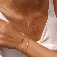 داينتي أنيقة صغيرة الزركون الخيزران قلادة قلادة سوار مجموعة مجوهرات الأبيض الأخضر كريستال سحر الذهب اللون أساور قلادة
