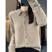 المرأة التلبيب الصوف الخالص سترة الخريف والشتاء جديد ميرينو الكشمير سترة طويلة الأكمام الرسمي الحياكة S-XXL